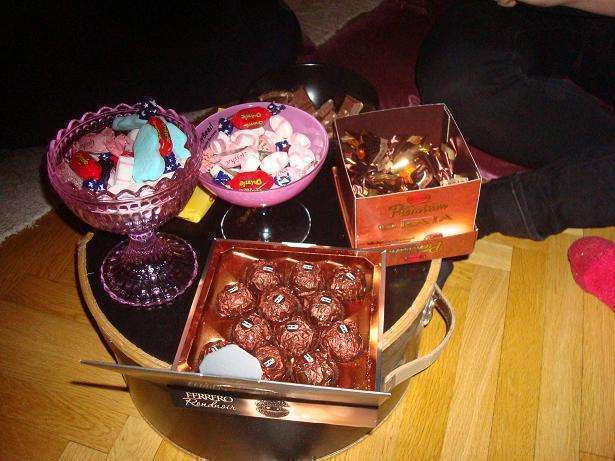 Jag tänkte (precis som alla andra uppenbarligen) på att ta med mig godis. Så det blev mängder med sötsaker! Tror ni att mina tidigare chokladfrosseridagar hindrade mig ikväll? INTE DÅ!