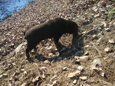 Jag promenerade på favvoplatsen och möttes av 4 valpar! Alltså ubersöta gulliga valpar! Sedan var ju förstås ägaren där också, och valparnas mamma och pappa, en barnfamilj som var lika förtjust i valparna som jag och ännu mer folk.