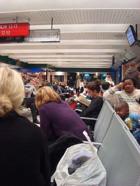 Efter snöskuttande började jobbet; stänga av gas, vatten, kylskåp, värme m.m. Stressa iväg till tåget; prata bort tågtiden med en härlig kvinna från Abruzzo, lämna in väskan, genom säkerhetskontrollen – och nu är jag här!