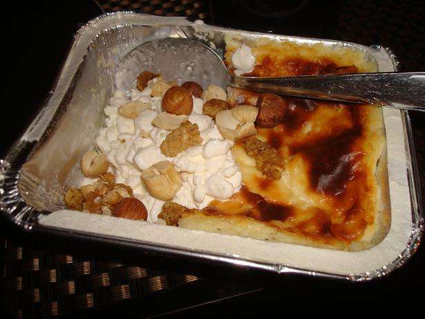 En av kvällens många mellanmål: ostkaka med keso, nötter och mullbär. I brist på grädde får man ta vad man har ;)