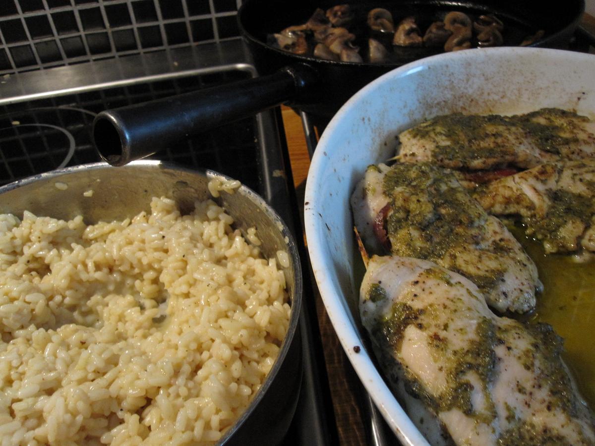 Man blir bortskämd här hemma förresten; när man kommer så finns det hemmagjord risotto och salami/pesto-fyllda kycklingfiléer. Nej man klagar ej.