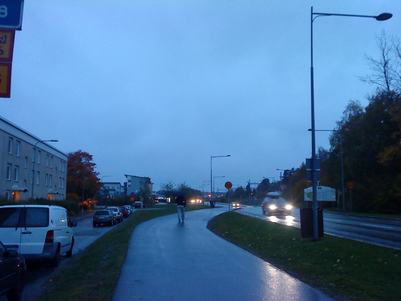 Jag tar mig upp, undrar om jag är sinnesrubbad, och kollar ut i den becksvarta morgonen. Tar på mig löparkläderna. Känner lite halvpirr i magen inför löpningen. Morgonlöpning igen, skoj ju. Hinner övertyga mig själv om att det här är kul, och står redo vid portdörren halv sju.