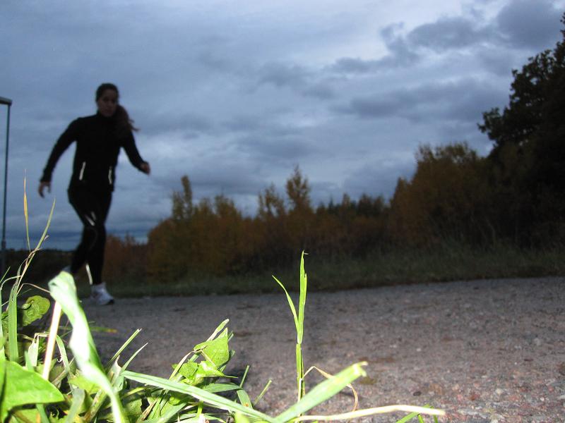 18:00 Jogg, löpskolning och magövningar i en dunkel skogsdunge, 5 kilometer jogg, total tid ca: 1 h