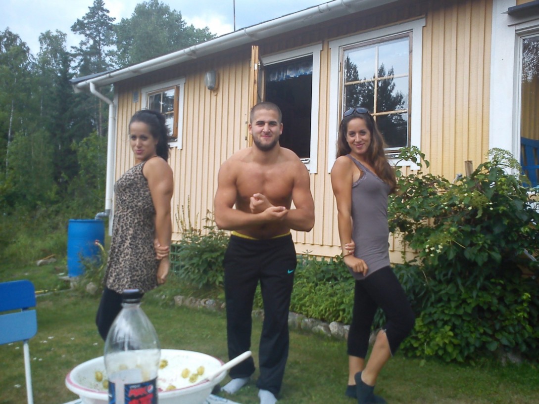 (En klassisk bild på mig och mina syskon. De lyfter tungt. Jag springer långt.. men jag har ändå en liten tricept…)