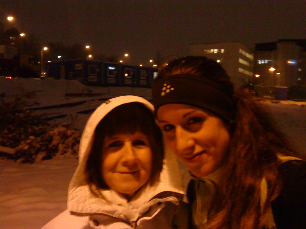 Löpcoach Miranda och mamma ska alltså strax sticka iväg och löpa. Bilden är ifrån torsdagskväll när jag mötte mamma på väg mot city. Mamma ser ut som en liten söt eskimå på bilden, älskade mamma :) Ska bli jättemysigt att springa tillsammans!