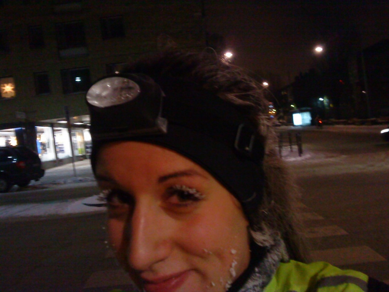 Jag tog vintertights och ett extra par tunna tights under, underställströja, mellantröja och vinterjacka. Pannband , icebugs och vantar, sedan var jag fit for fight!