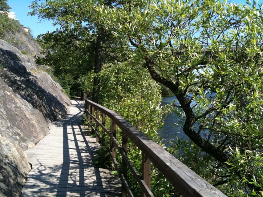 Ökade farten efter 7km. Ner till 5.25, sen 5.17, 5.00 innan jag gick ner till 4.44 och 4.25. Pustade ut lite i värmen med vacker utsikt och var ganska nöjd. Det hade inte varit speciellt tufft men ganska varmt. Sedan blev jag himlans glad när jag strechade vaden en snabbis och en tjej i löparskor passerar ”Bra blogg! Inspirerande!” säger hon och jag hinner svara ”Åh vad roligt!” innan hon försvinner på pigga ben. Tack till tjejen i löparskor! :)