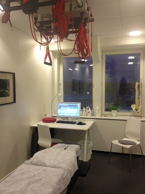 Blev lite justerad i höft, nacke och rygg innan vi gick igenom mitt rehabprogram. Fy tusan vad jag kommer bli höftstark/bålstark snart.. vänta bara. Som jag ska träna! Ni ska få se övningarna senare.