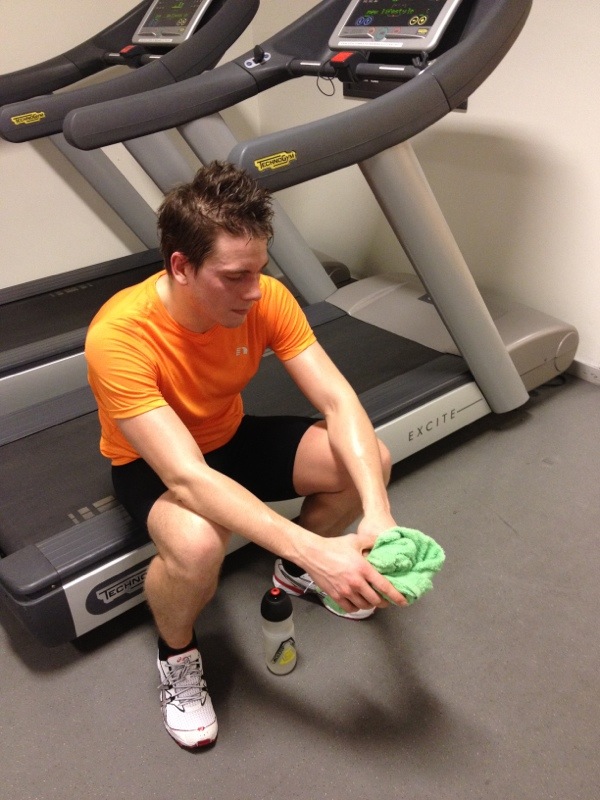 Upp på löpbandet. Springa tills illamåendet kommer. Jag och Järnmannen var helt ärligt inte kapabla till mer än varsina 3km. (Mina gick i 5.08min/km, ändå rätt bra va med tanke på hur sjukt jobbigt det kändes).