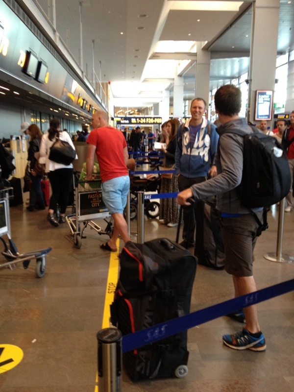 På plats med Erik och Johan, Salomon-grabbarna. Stämningen är på topp och jag känner mig galet förväntansfull. Mot värmen, bergen och alla löparnördar. Kan ju inte bli bättre!